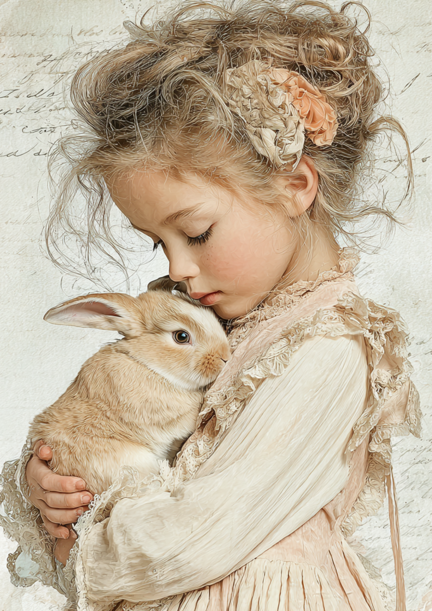 Rice Paper For Decoupage Girl With Bunny Full Cat. No. 5247